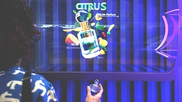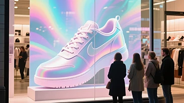 Holografische displays die shoppers aantrokken met interactieve visuals.